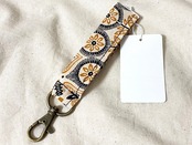 アフリカ布製のキーストラップです。幅約2cmの生地をくるっと折り返したような形で、スナップボタンは開けてカバンなどに取り付けることができす。