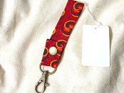 アフリカ布製のキーストラップです。幅約2cmの生地をくるっと折り返したような形で、スナップボタンは開けてカバンなどに取り付けることができす。