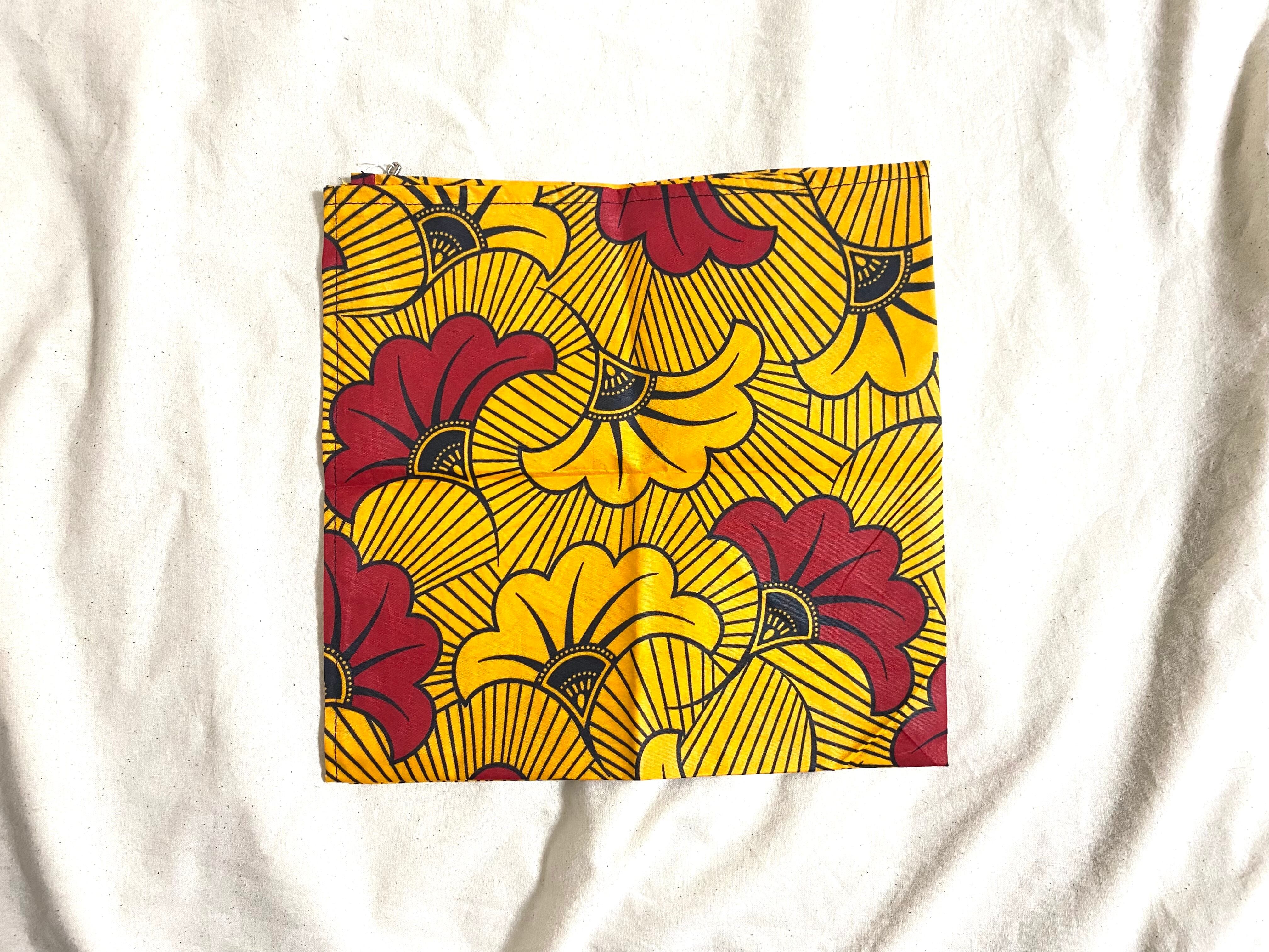 アフリカ布の美しさをそのまま楽しんでいただける大判ハンカチです。一辺約54cmとハンカチとしては大判サイズですので、バンダナとして使ったり小判のスカーフとして使ったりと様々な使い方がしていただけます。